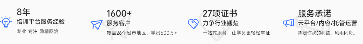 专注于培训信息化建设、数据挖掘与分析的高 新技术企业自2017年成立以来,致力于提供培训考试解决方案,满足各类行业 场景职业培训考试需求主打数智化SaaS云服务平台+数字化的安全生产知识库。